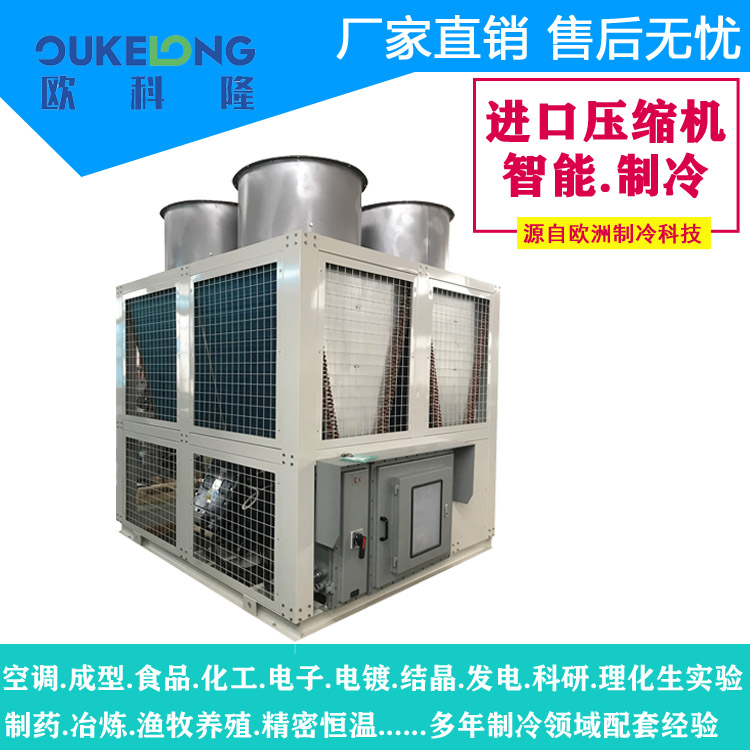 歐科隆Ex風冷螺桿式防爆冷水機組是一款通過國家防爆認證(Ex dⅡB T4 Gb)的專業(yè)工業(yè)制冷設備,整機防爆設計符合GB3836標準,專為石油、化工、制藥等易燃易爆場所提供安全可靠的制冷解決方案。