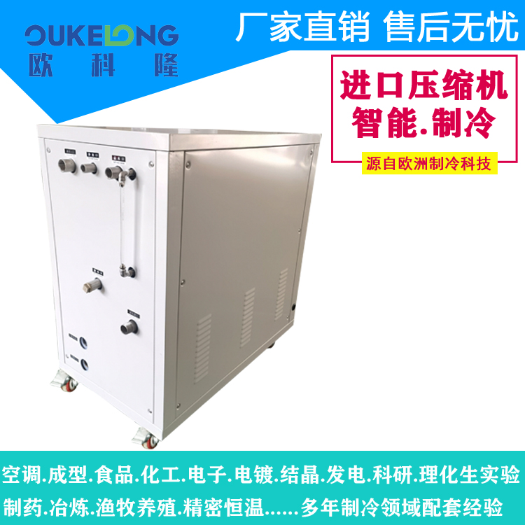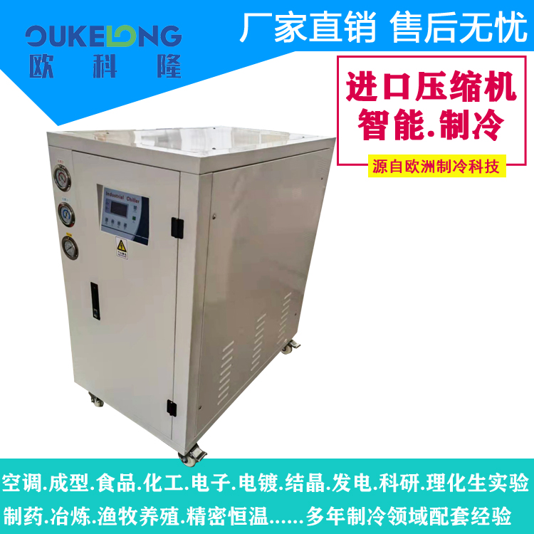 產品說明:歐科隆高端5匹水冷箱式冷水機|應用于高端制造,設計使用壽命15年