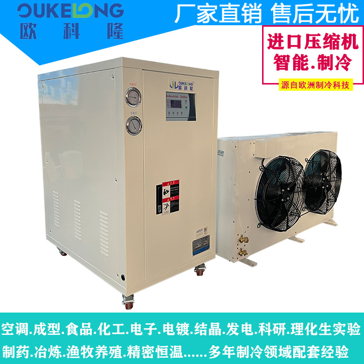 歐科隆制冷5HP分體式冷水機是一款專為中小型工業及商業應用設計的高效制冷設備,采用壓縮機與冷卻系統分離結構,兼具性能與安裝靈活性。