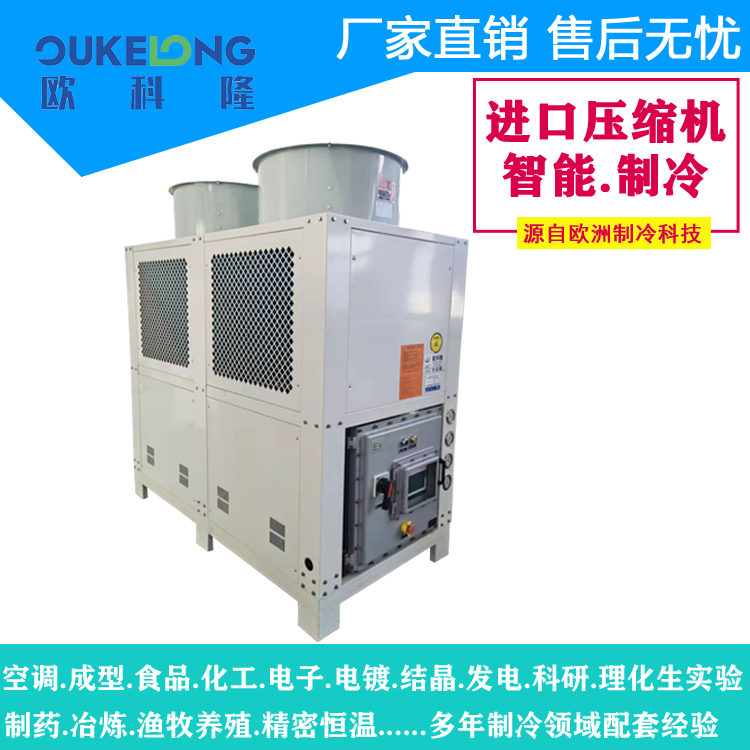風(fēng)冷箱式防爆冷水機(jī)是歐科隆制冷打開(kāi)市場(chǎng)的拳頭產(chǎn)品,歐科隆制冷擁有廣泛的防爆冷水機(jī)配套經(jīng)營(yíng),包括臭氧發(fā)生器,甲烷發(fā)電,化工化纖,石油天然氣,新型環(huán)保行業(yè)等,歐科隆防爆冷水機(jī)采用隔爆、增安、本安、正壓、充油、充砂、無(wú)火花、澆封和氣密等多種防爆方式,使機(jī)組可以在易燃易爆場(chǎng)合使用。