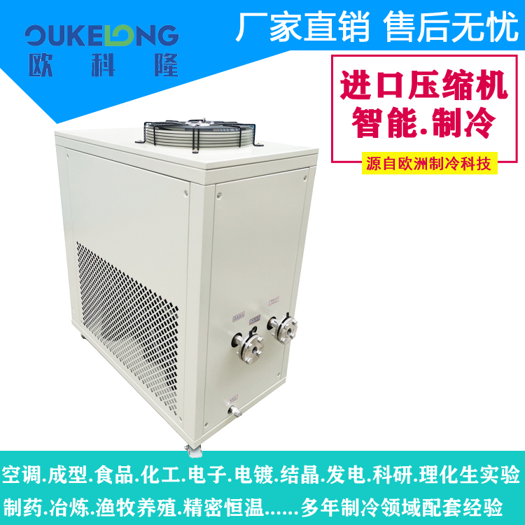 產品說明:2匹風冷箱式冷水機-廣泛應用于實驗室,水族館和工業冷卻,工業制冷請認準——歐科隆制冷