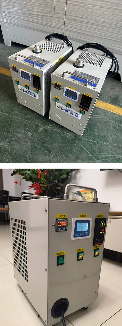 本案例為制冷量200W左右的微型高低溫液冷機(jī)組,可以制冷到5度,又可加熱到80度,應(yīng)用于車載測試使用。